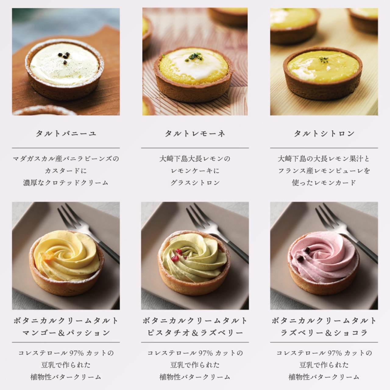 ボタニカルクリームタルトは、大豆から作られた植物性バターを使った見た目も可愛い人気クリームタルトです。