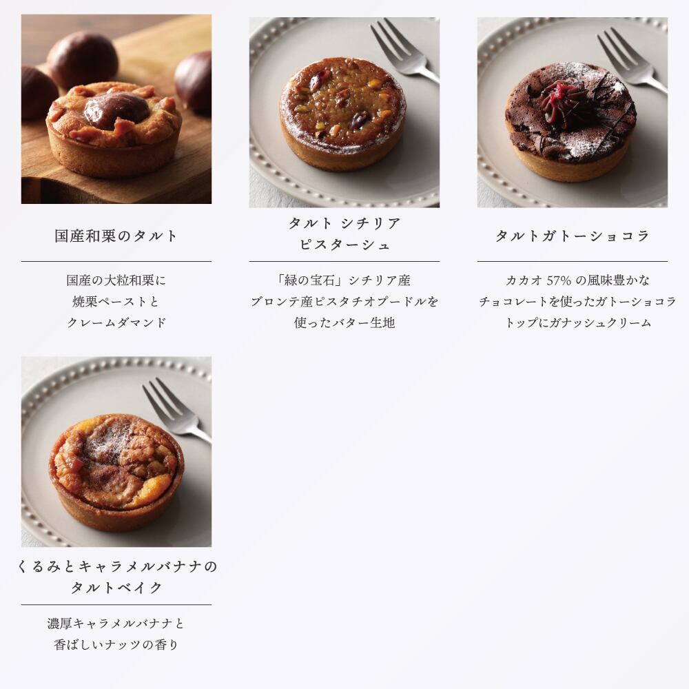 タルト4個入りAセット【レモーネ、シチリアピスターシュ、和栗、ガトーショコラ】